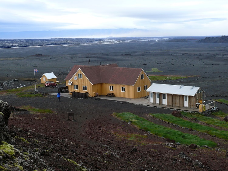 Am Kverkfjöll angelangt. Hier in Sigurðarskáli sind sowohl komfortable Übernachtungen in festen Unterkünften als auch Zeltübernachtungen möglich.