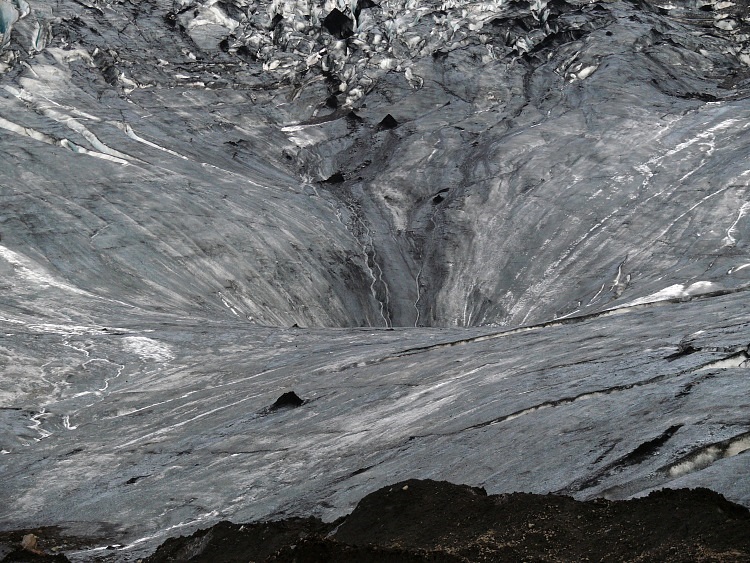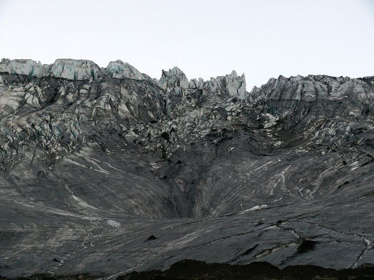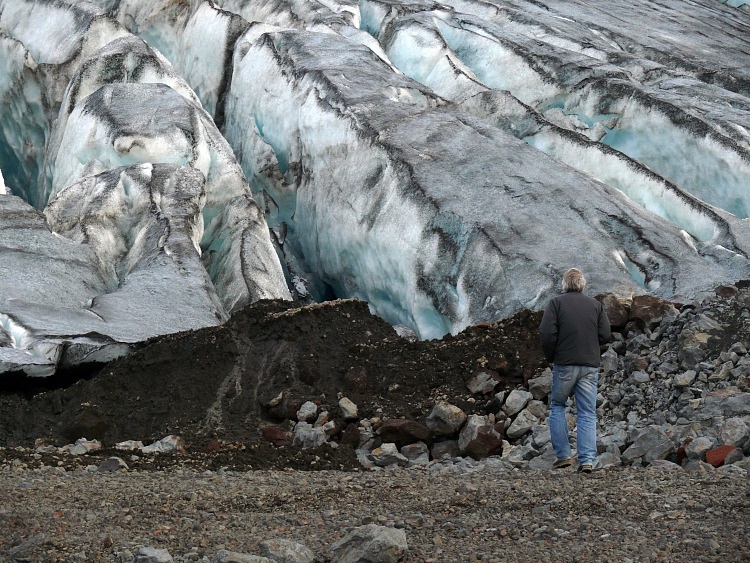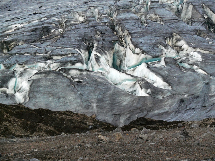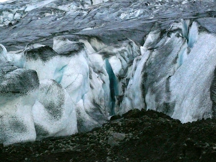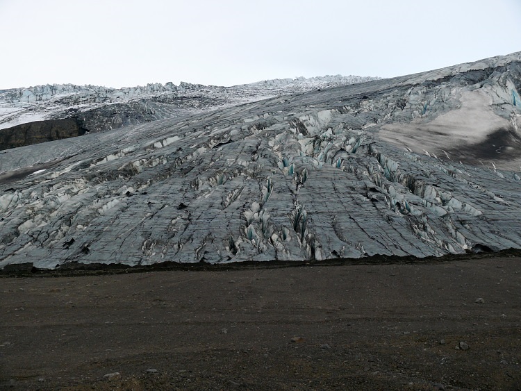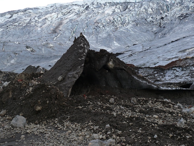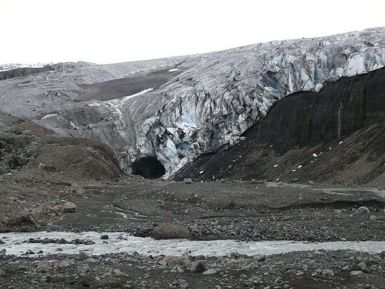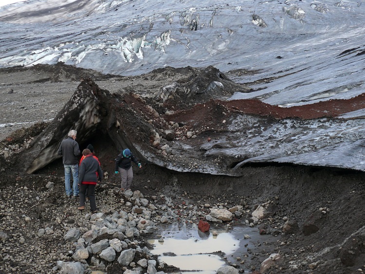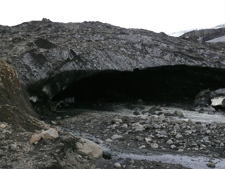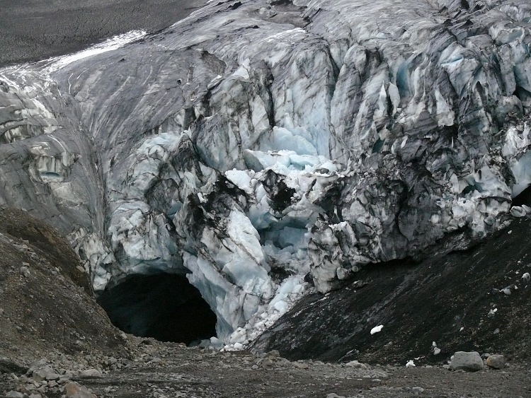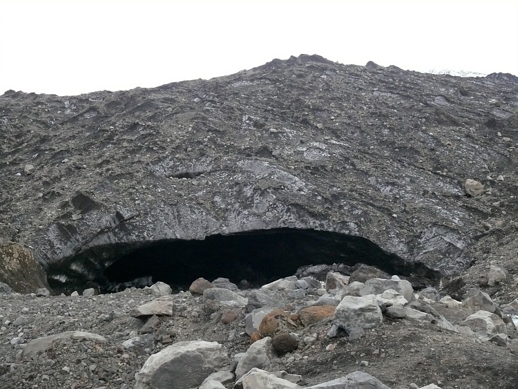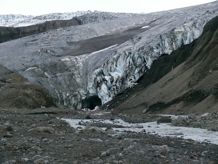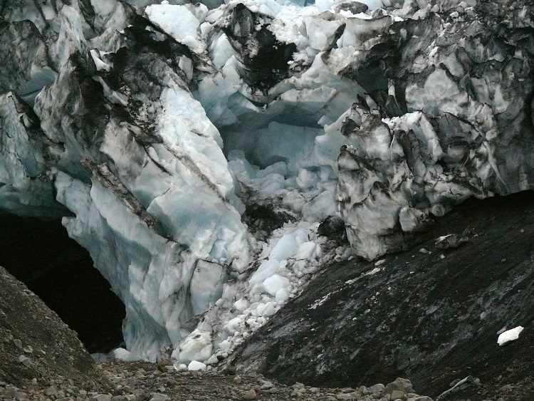 Anschließen fahren wir ein paar Kilometer nach Westen, um eine Gletscherhöhle zu besuchen. Die Gletscherhöhle sollte man momentan nicht betreten, da sich schon einige gefährliche, größere Eisblöcke von der Decke gelöst haben.