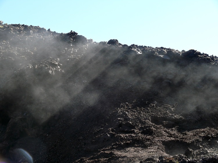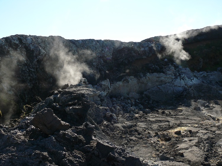 Auch auf der Westseite befinden sich in der Bergflanke Solfatarenfelder