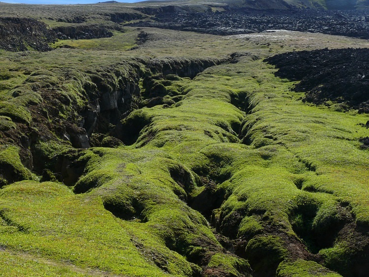 Die älteren Lavafelder sind bereits wieder von spärlicher Vegetation erobert worden.