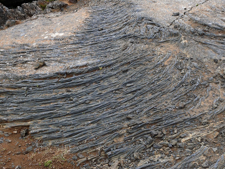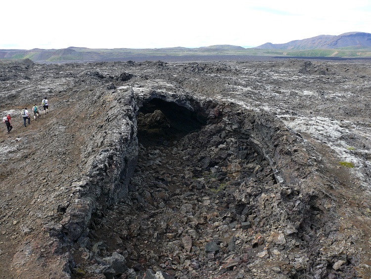 Eine Lavaröhre, durch die einstmals flüssige Lava durchgeflossen ist. Nachdem alles abgeflossen war, blieb die röhrenförmige und schon etwas erstarrte Hülle erhalten.