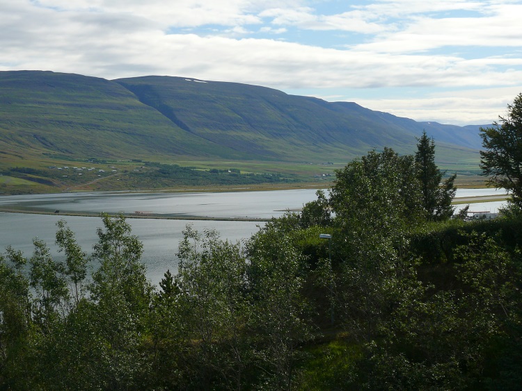 Blick über das Südende des Fjordes Eyjafjörður bei Akureyri