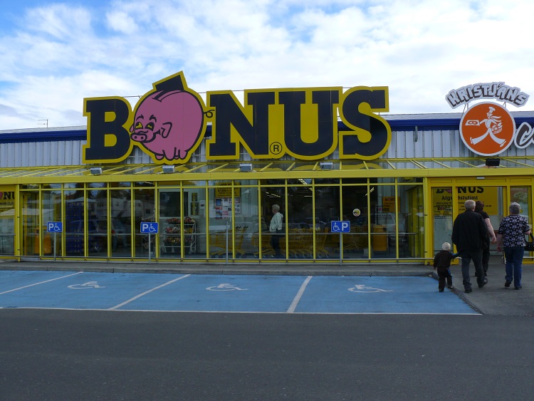 In einem Einkaufszentrum von Akureyri frischen wir unsere Vorräte auf.