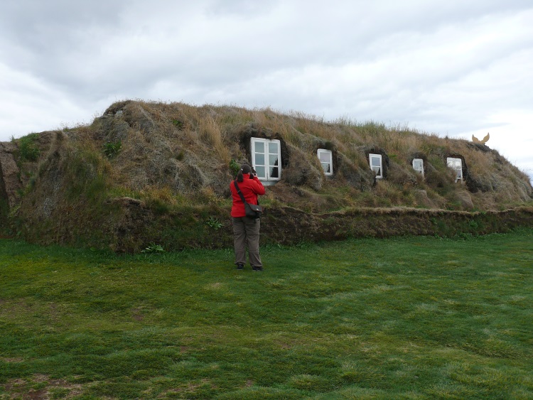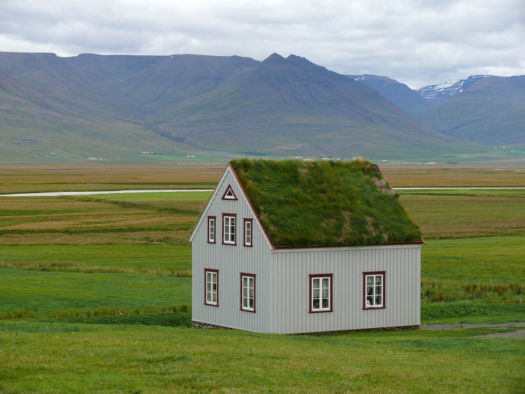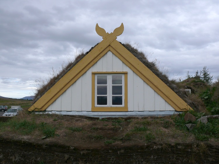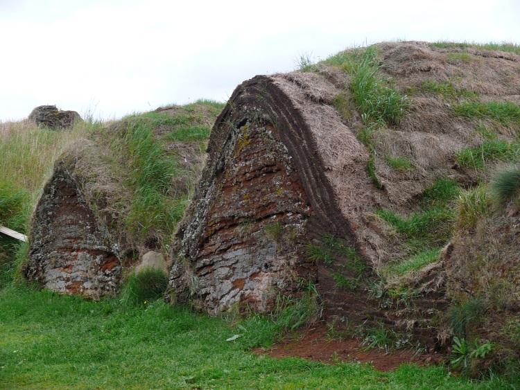 Teilweise in die Erde gebautes und mit Torfziegel bedecktes Gebäude des Museumshofes Laufás