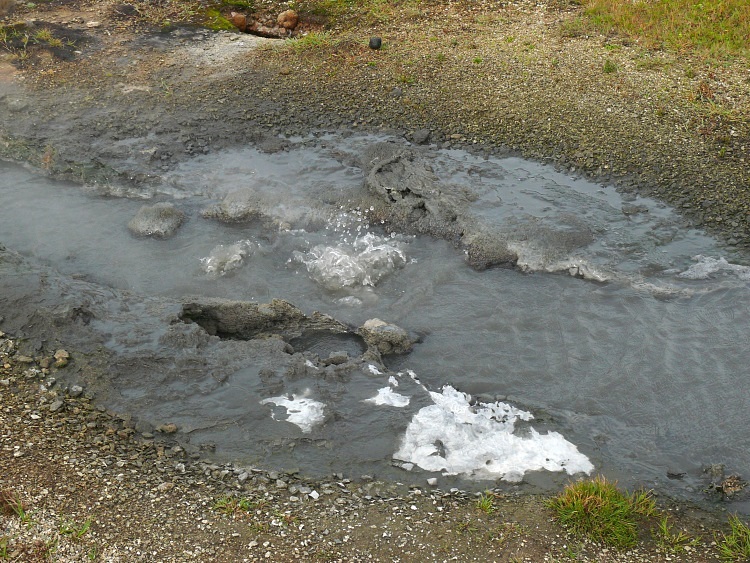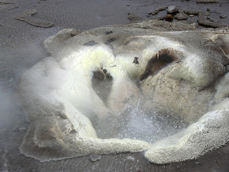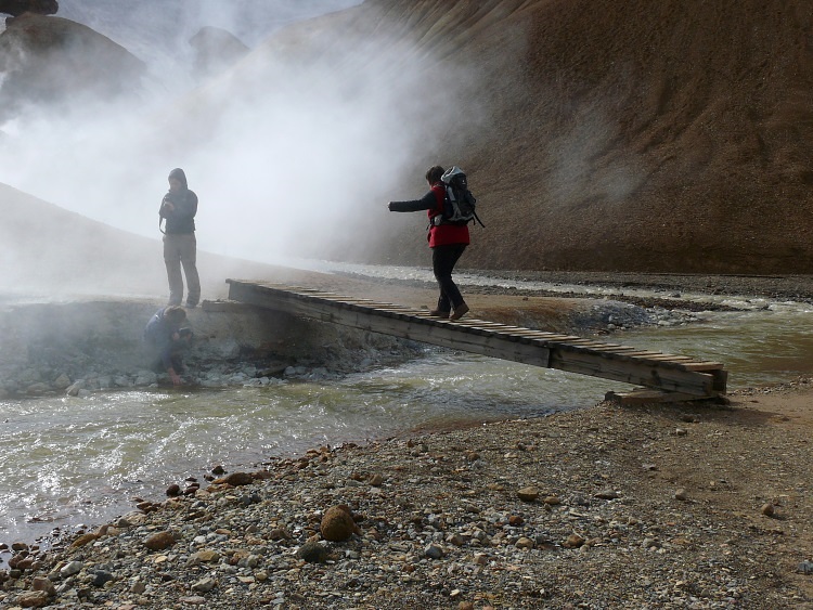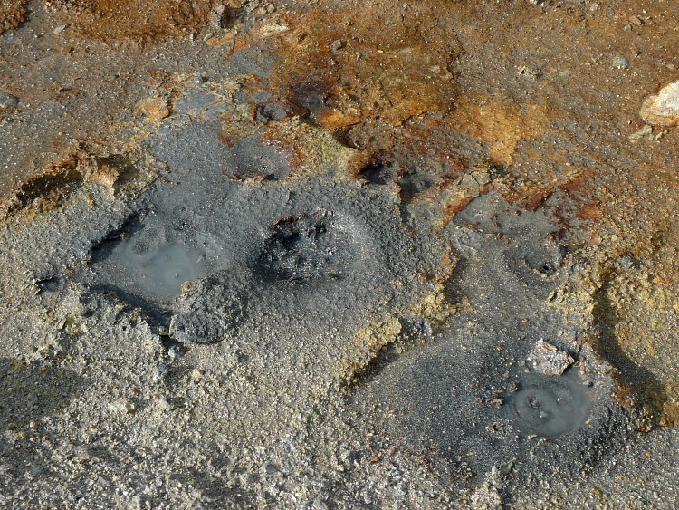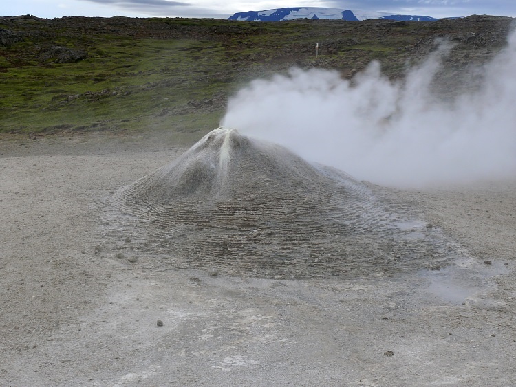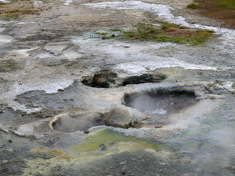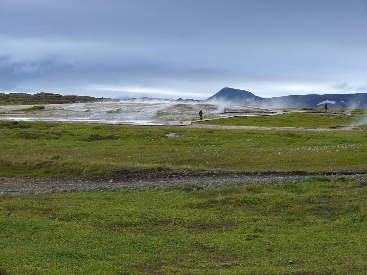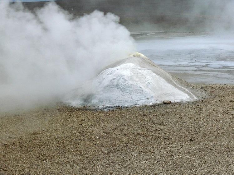 Dampfende Erdlöcher zeugen von den hohen Temperaturen in diesem Gebiet