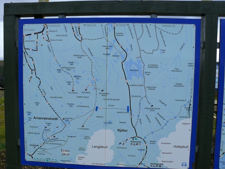 Nach langer Fahrt Richtung Westen biegen wir auf die Piste durchs Hochland ab. Etwa in der Mitte zwischen Nord- und Südküste liegt das Geothermalgebiet Hveravellir, das wir heute besuchen wollen.