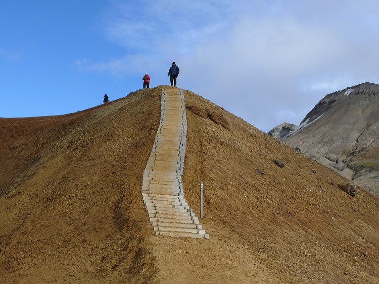 Die Treppe erleichtert den Abstieg auf dem nass-rutschigen Boden
