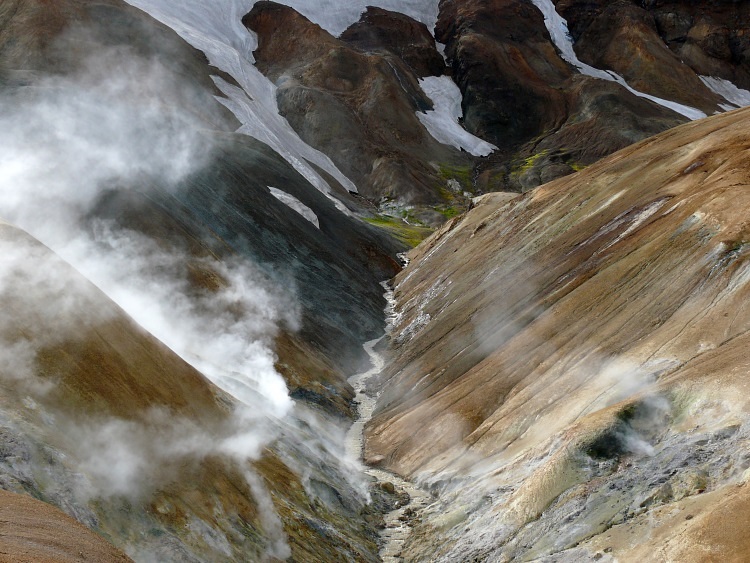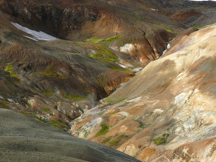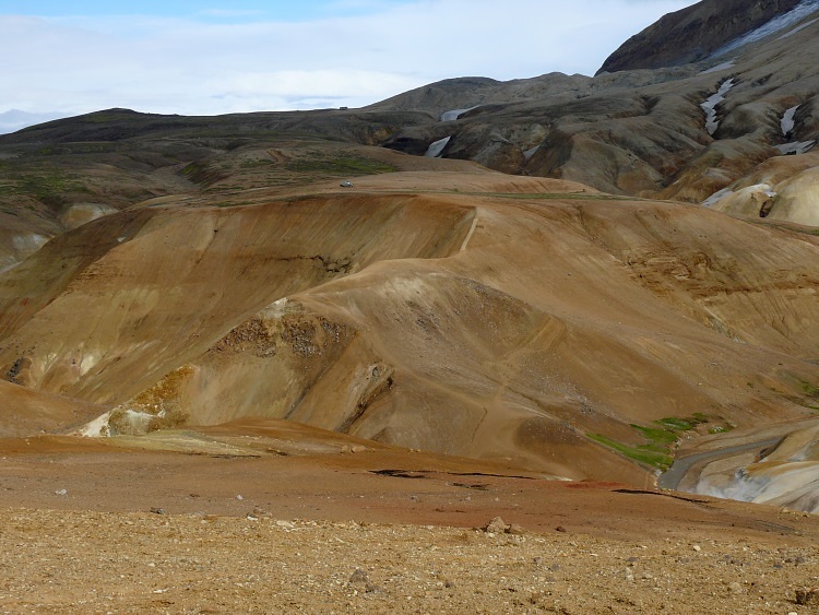Unser nächstes Ziel ist das farblich sehr spektakuläre Kerlingarfjöll, ein Hochtemperaturgebiet, zwichen zwei großen Gletschergebieten gelegen.