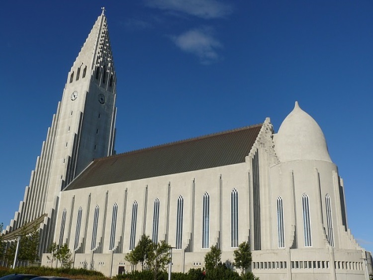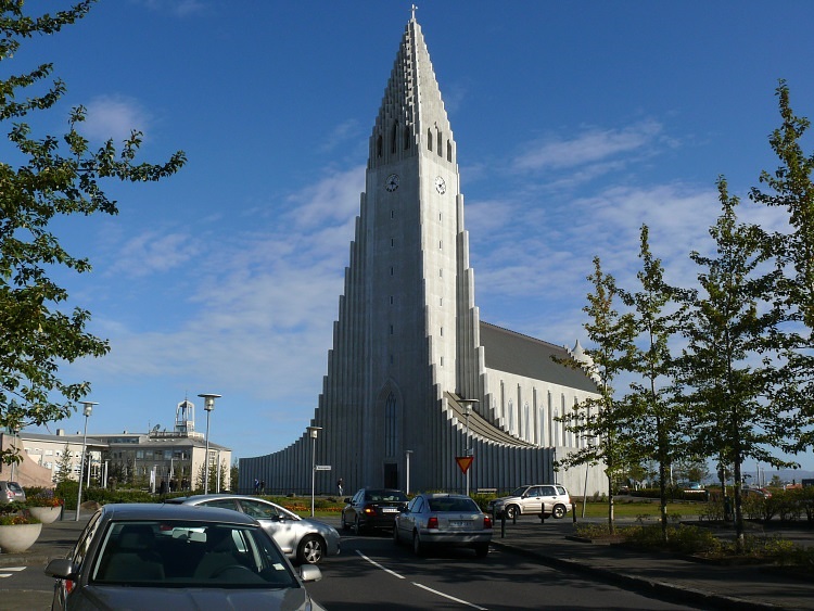Háteigskirkja mit den spitzigen Doppeltürmchen