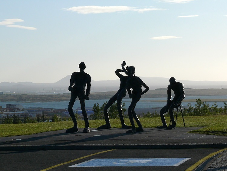 Musiker-Skulpturen direkt vor dem Wasserspeicher Perlan