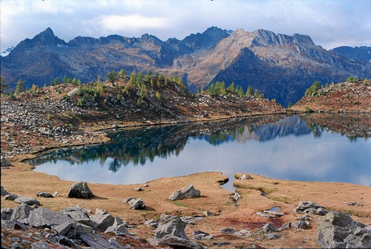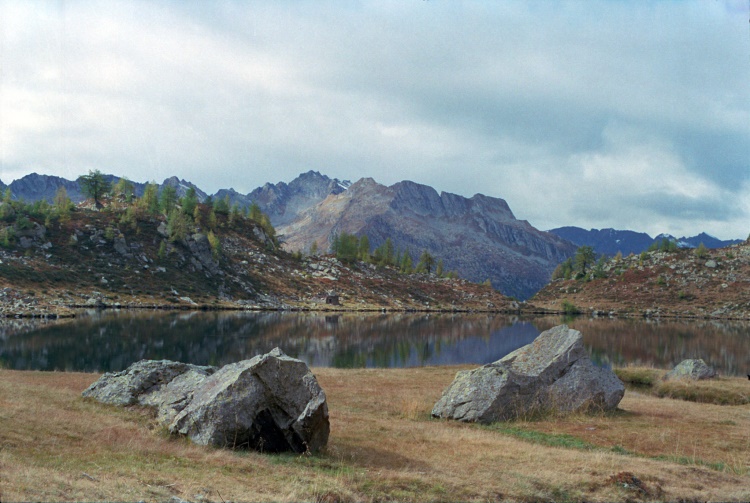 Lai di Mognòla mit Blick zu den Bergen im Westen vermutlich um den Pizzo dei Tirz